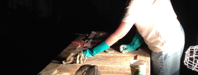 Today Mom U. began stripping the layers upon layers (I’m talking at least 10 layers!) of paint off bedroom door #1. This house was built in 1912, and although I want to make massive upgrades, I want to keep as much of the original features as possible, the doors being one of these things. I love these 5 panel craftsman doors!