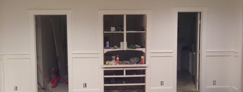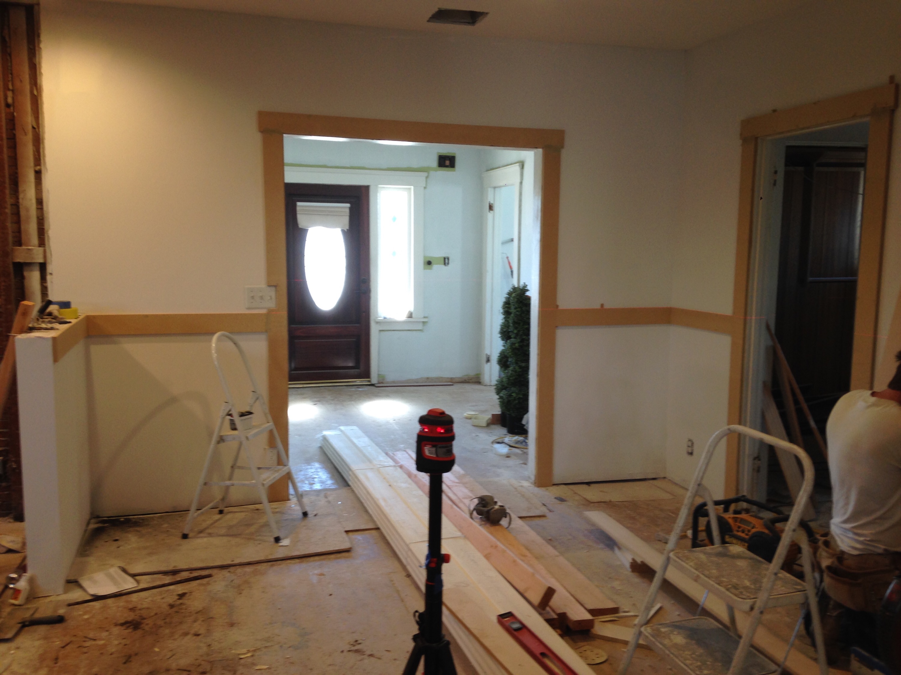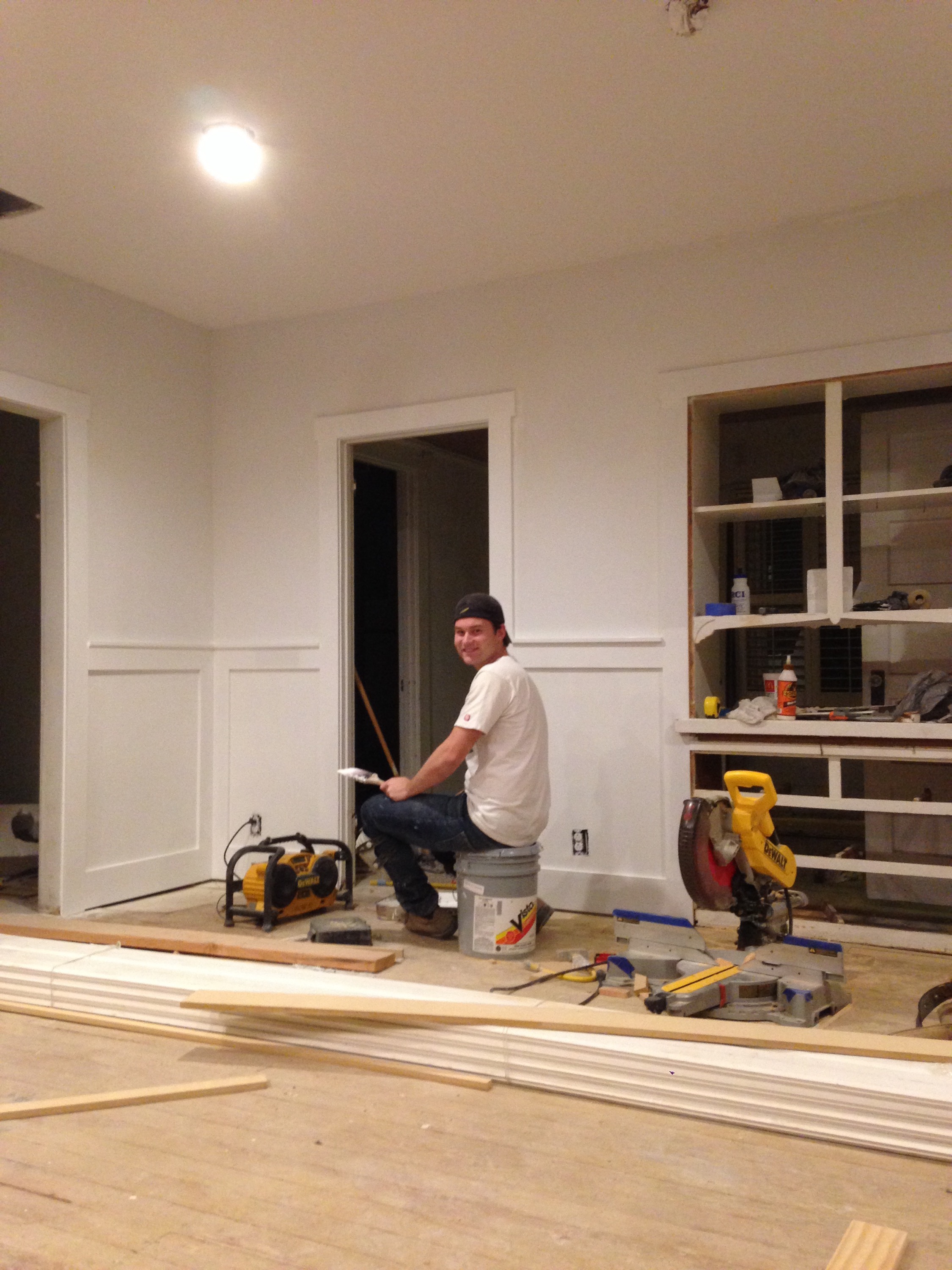 We didn’t have work today so Kevin did a lot of work on the house. He began adding moldings to the dining room to add some character to the large room. We searched Pinterest for a bunch of ideas, we landed on this…