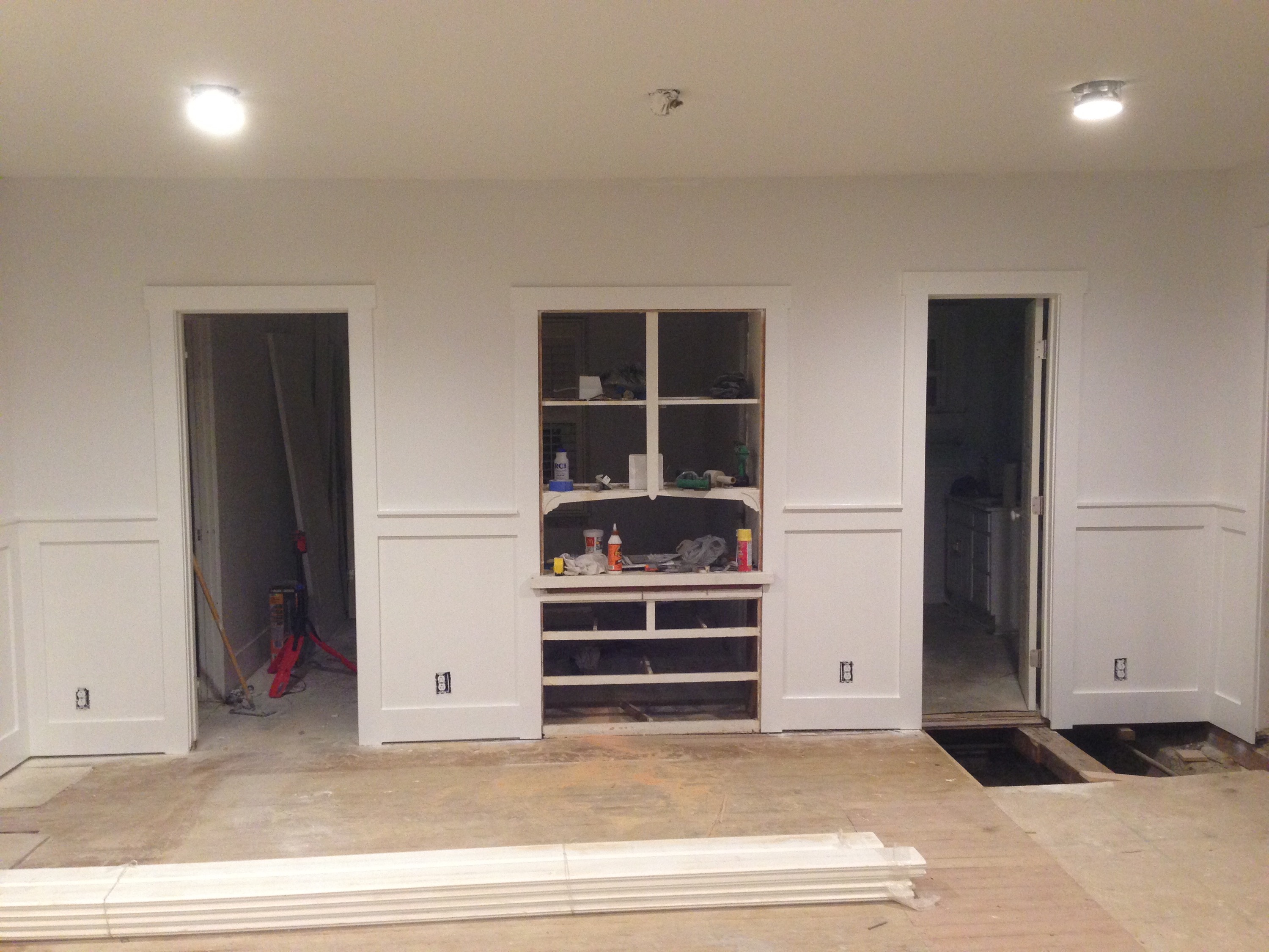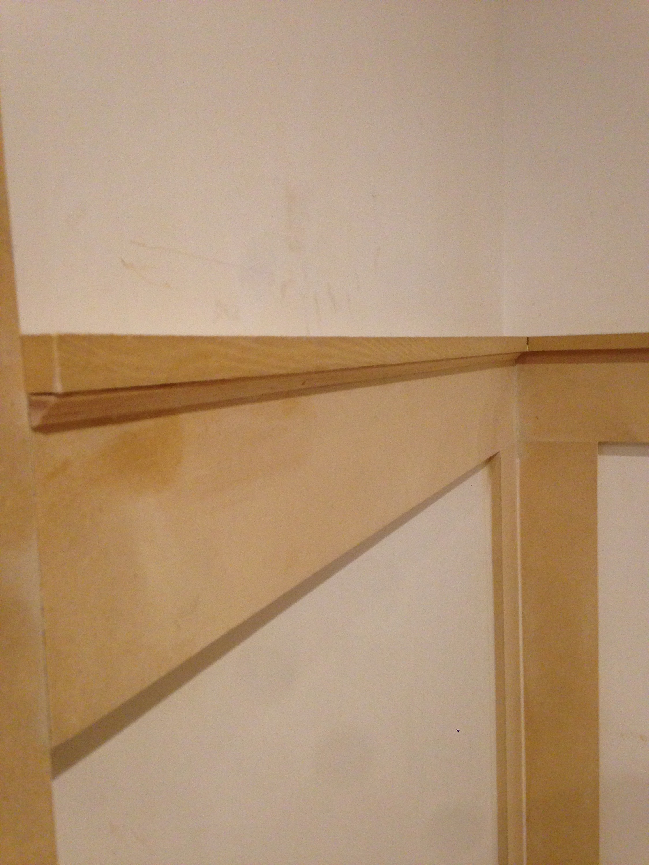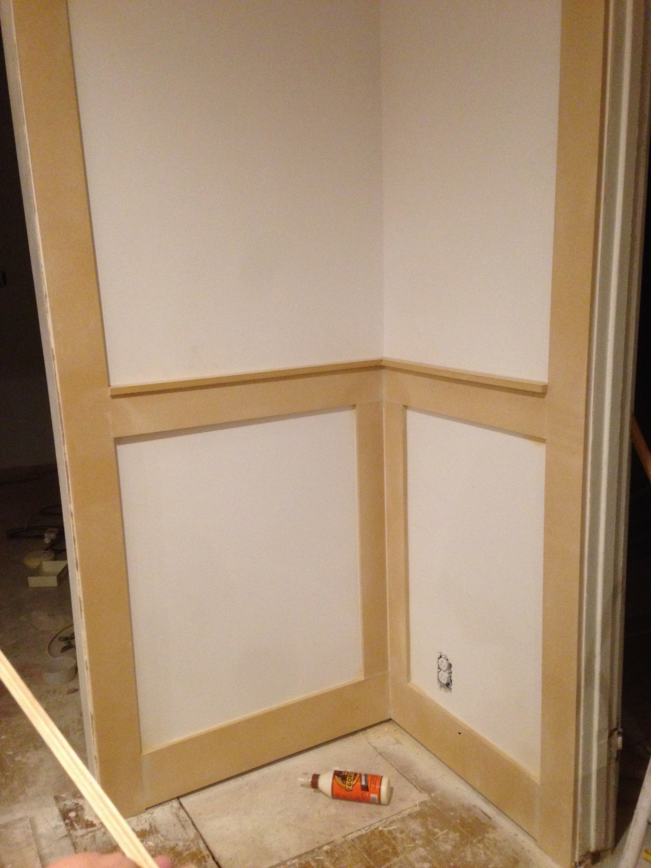 Chair moldings being installed. As you can see the back of the hutch hasn't been attached yet so you can see straight into the second bedroom.