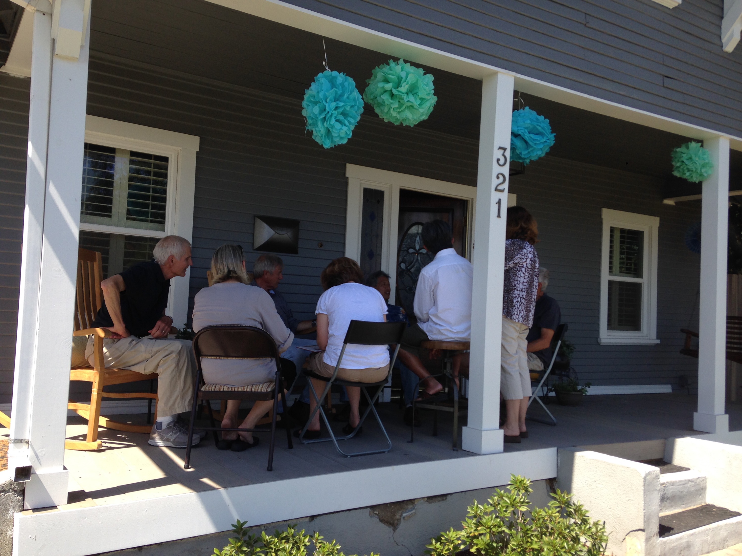 Telling stories on the porch.