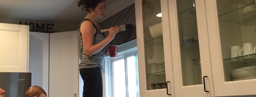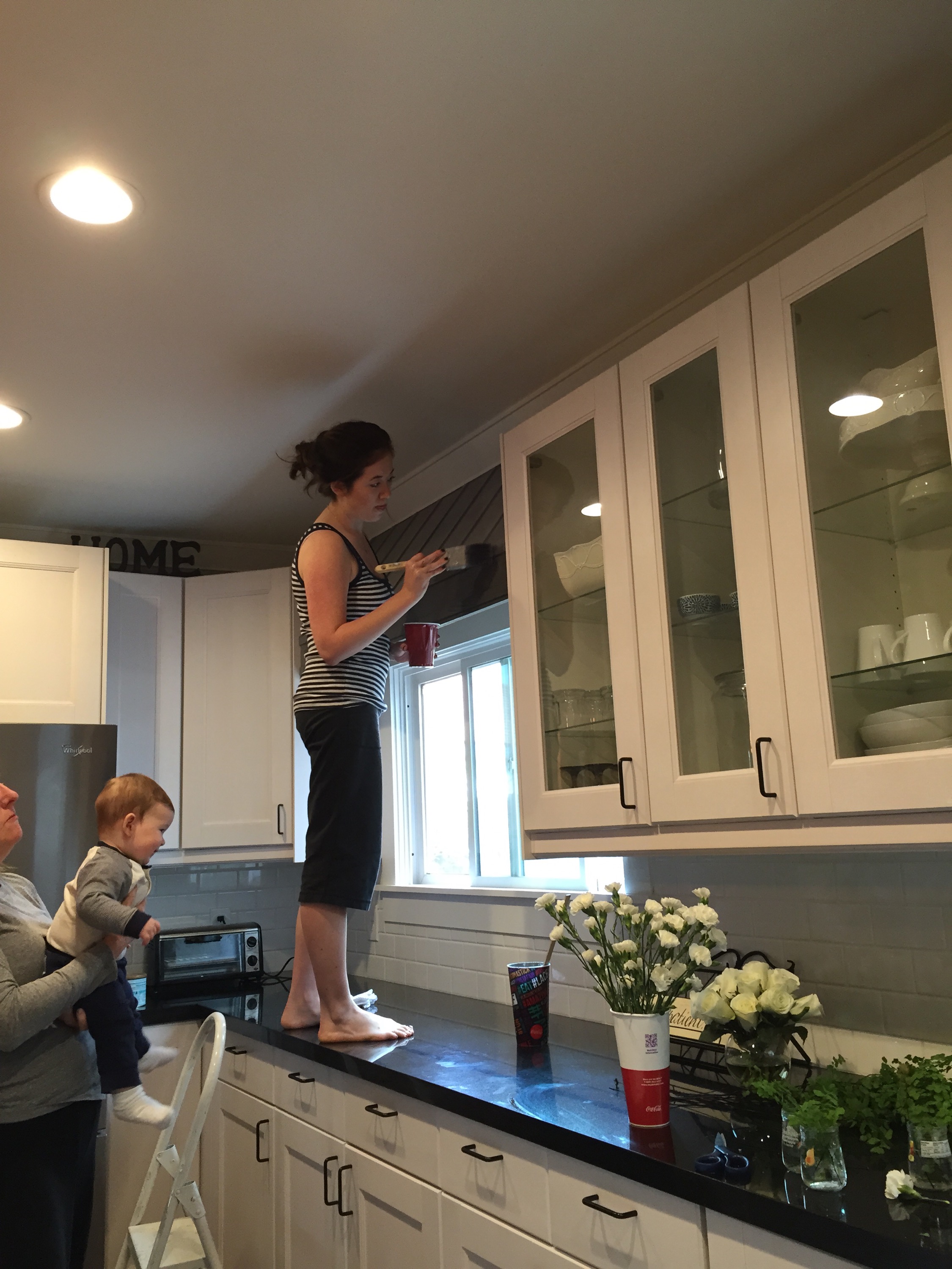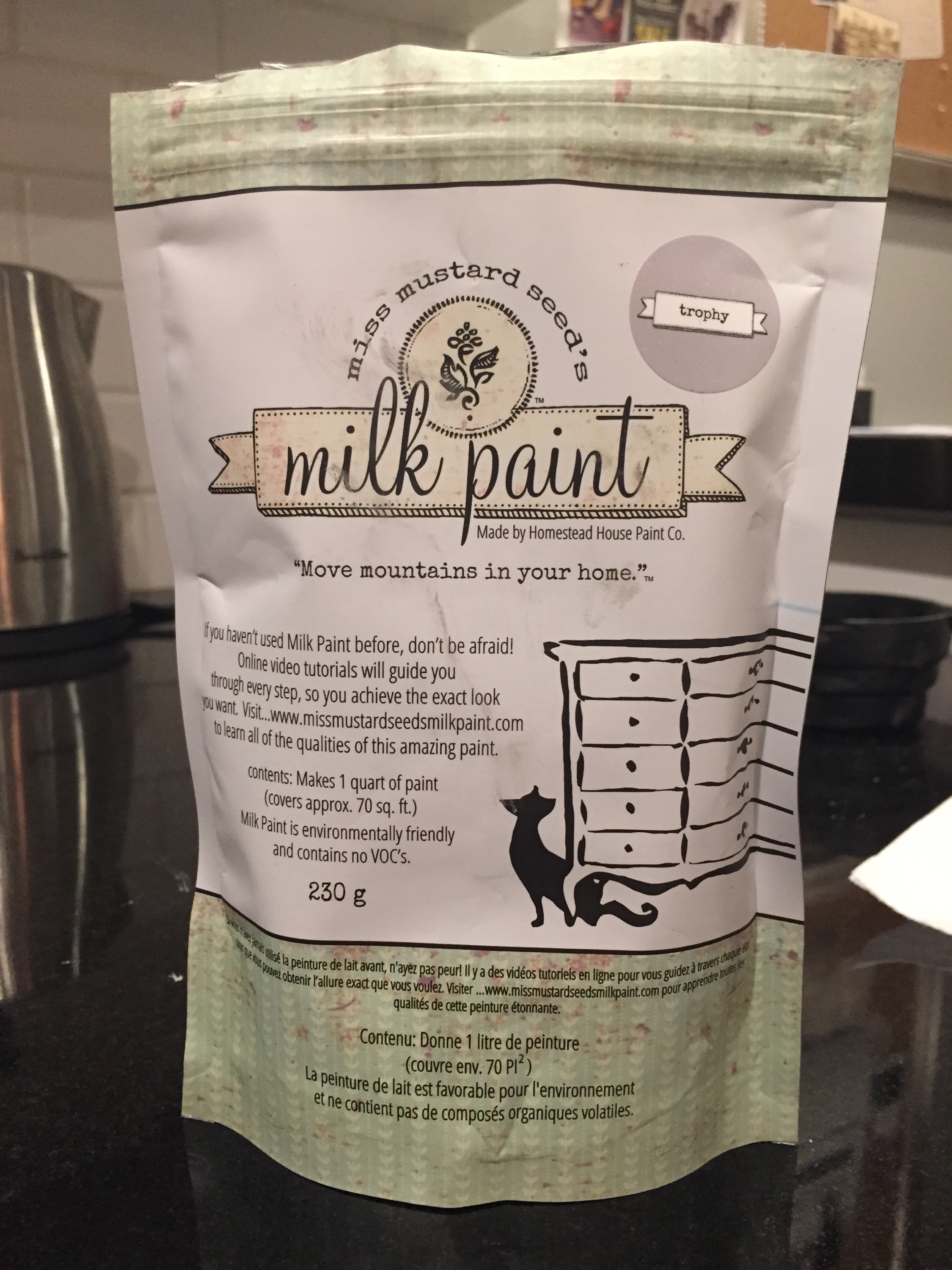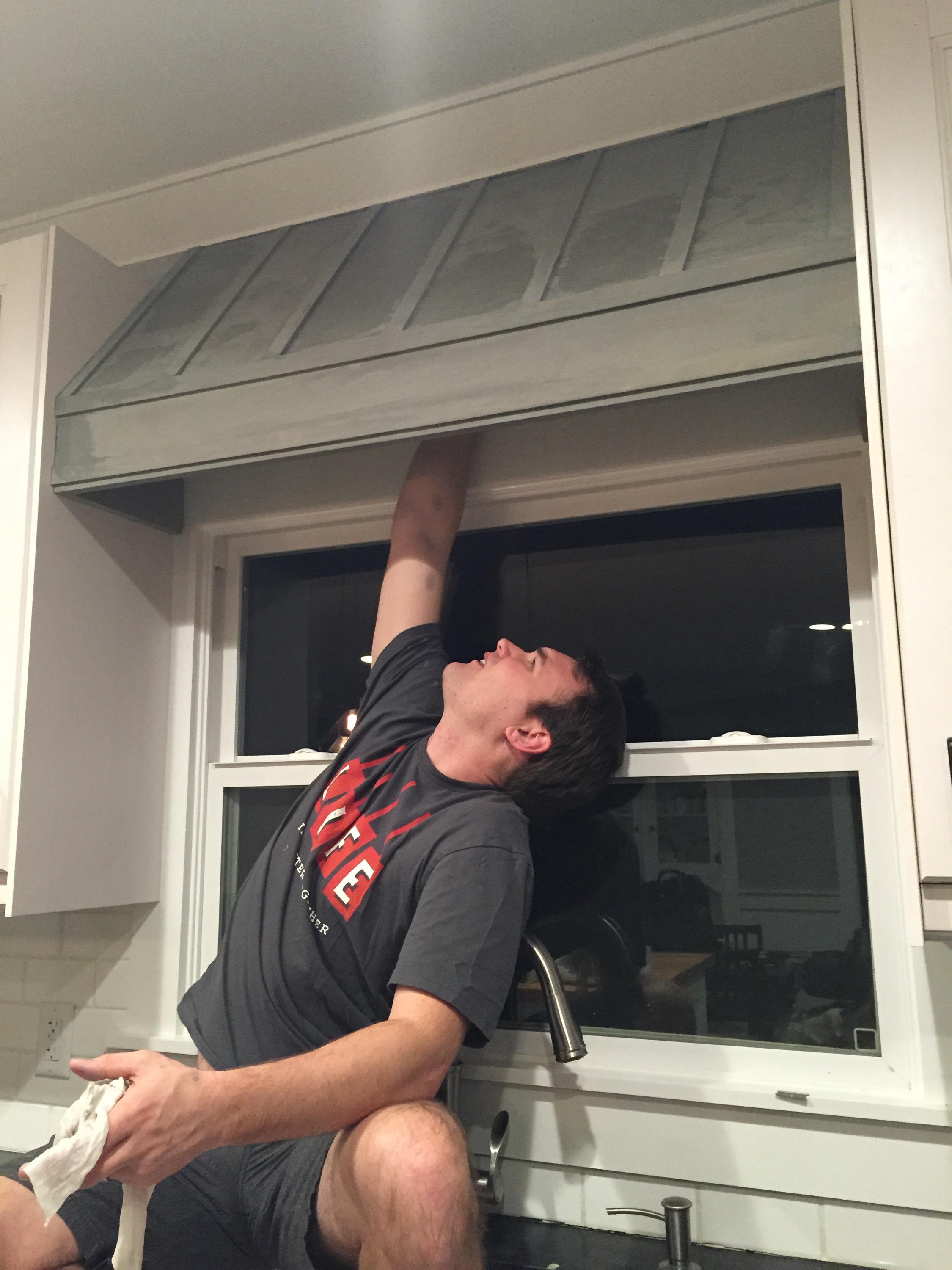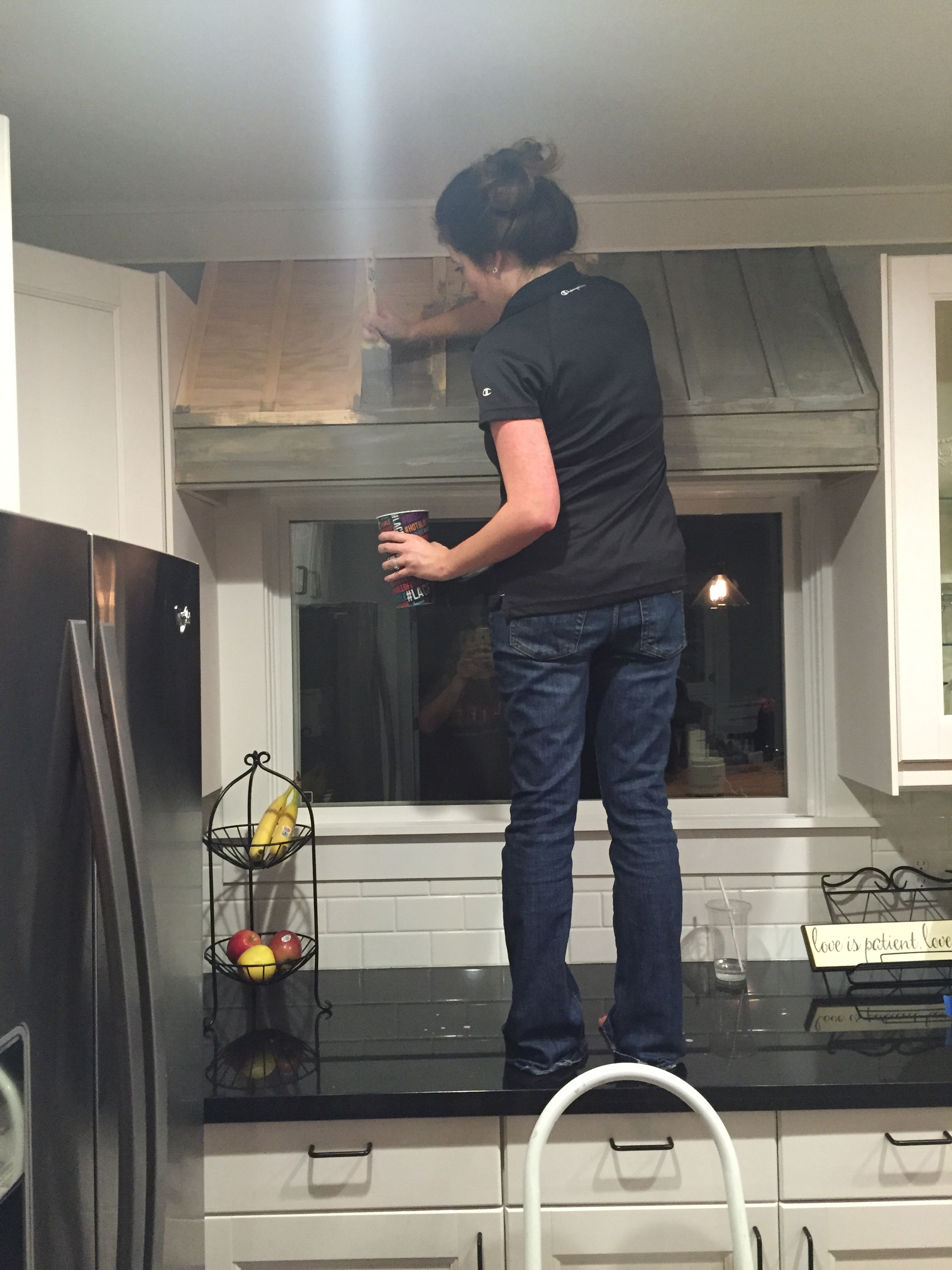 After much debate about what color to paint the awnings I fell back on my trusty gray. I wanted it darker than my walls to contrast nicely with the white cabinetry yet light enough to still see some of the wood grain. That is when I stumbled across milk paint. The perfect solution to my problem. With milk paint all you have to do is add water and dilute it to the right color you like. It acts more like a stain. To read more about it CLICK HERE.