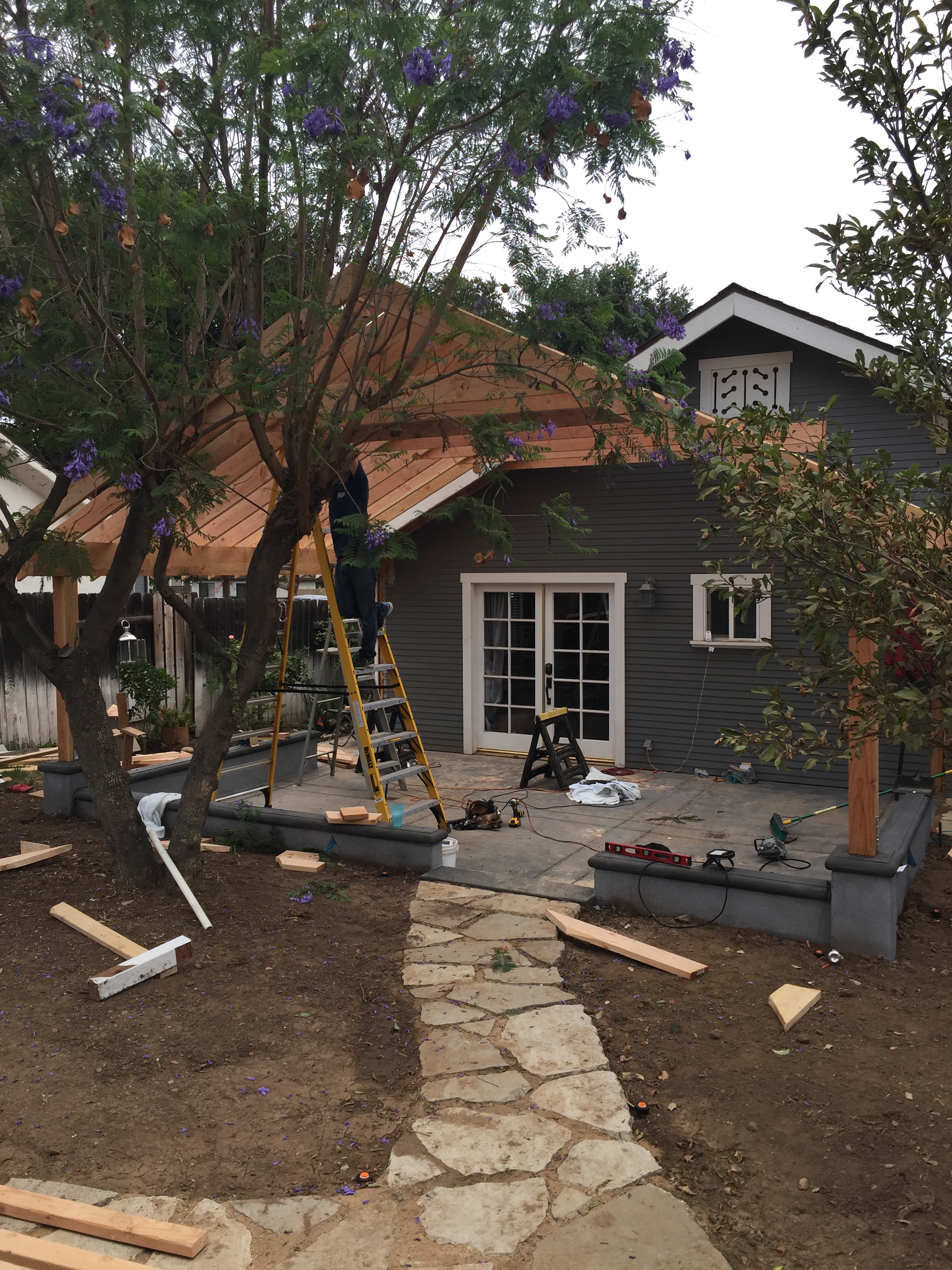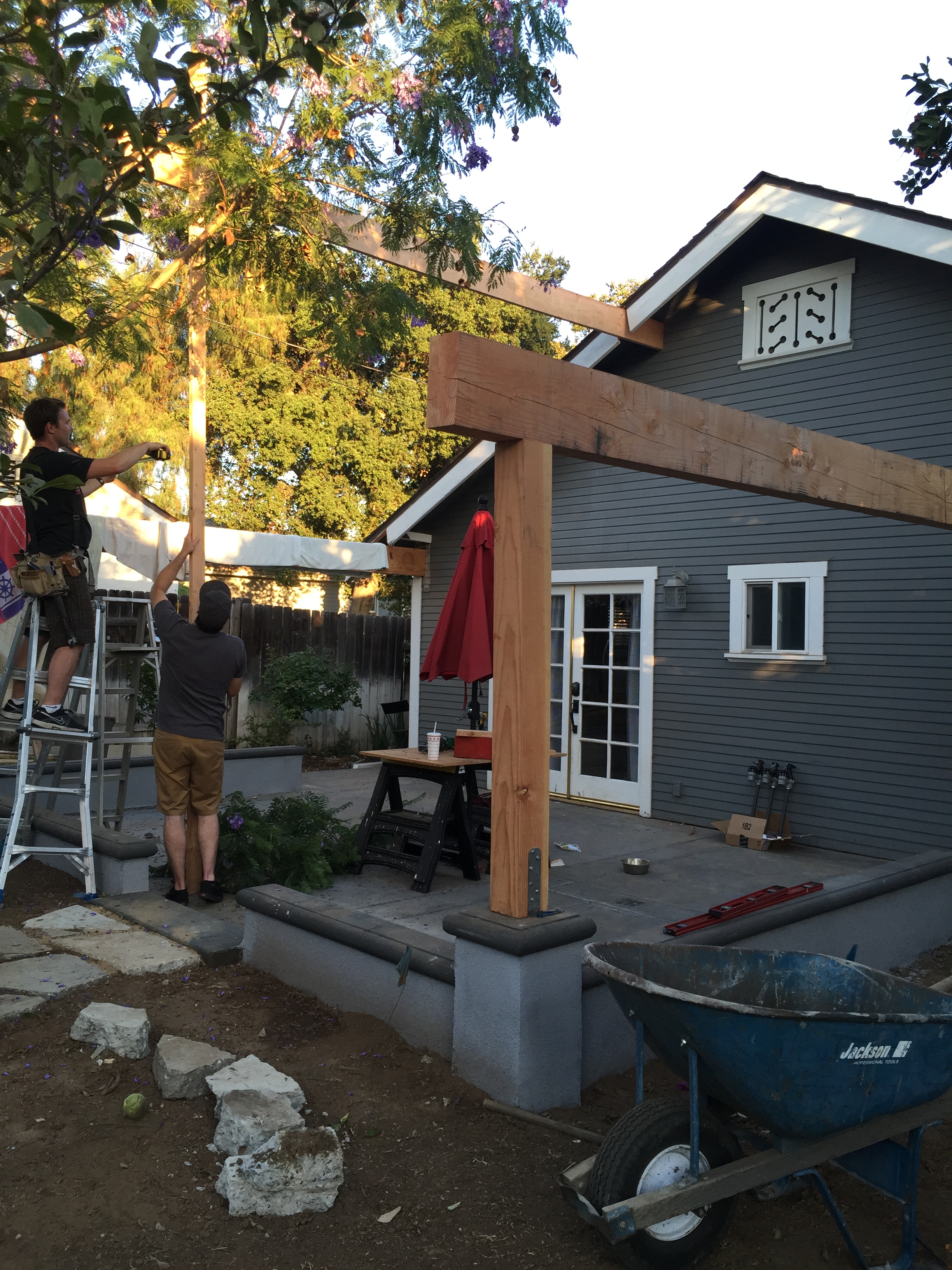 Kevin has spent many nights this week framing the new patio cover. Thanks to our brother in law Dan, Kevin’s brother Jason, and our friend Jake for their help.